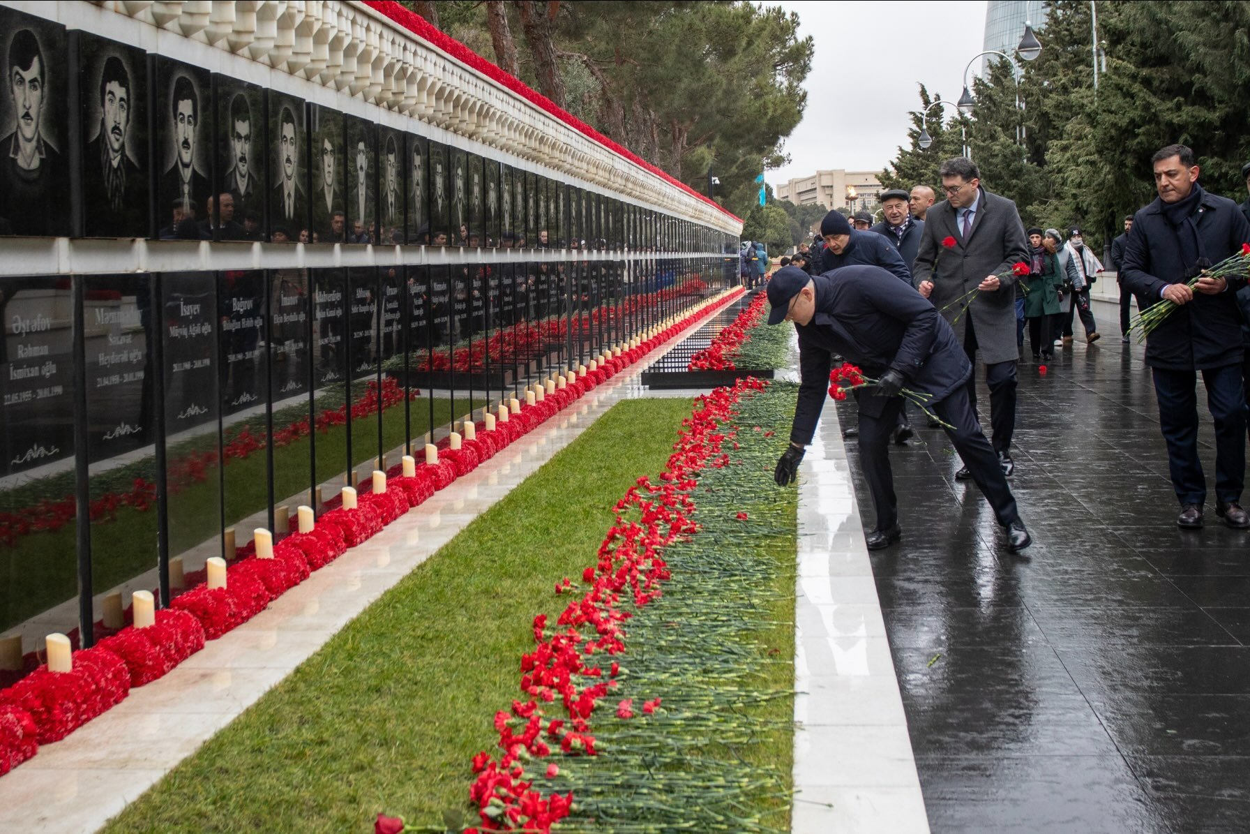 Azərbaycanın suverenliyi, müstəqilliyi və azadlığı uğrunda mübarizədə canlarını qurban vermiş qəhrəman Vətən övladlarının məzarları üzərinə qərənfillər qoyulub, onların əziz xatirələri hörmət və ehtiramla yad edilib.
